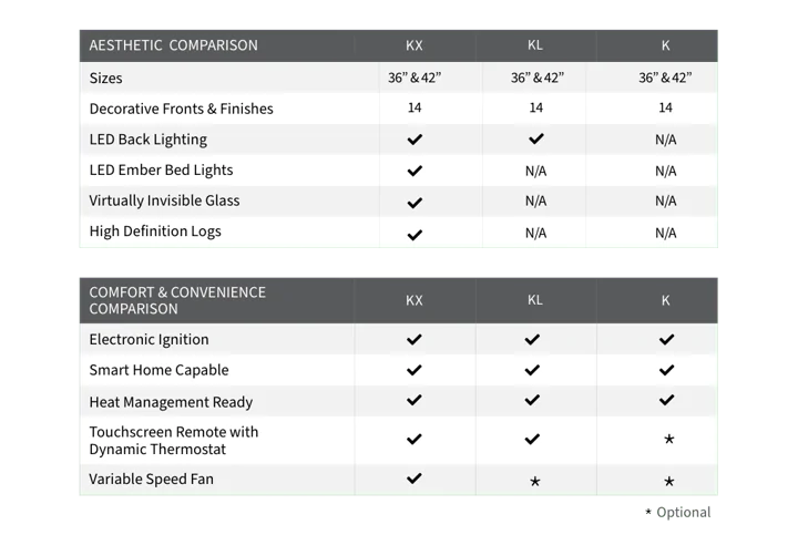 The 8K 42" Direct Vent model offers a larger viewing area and powerful heat output. It also comes with the IntelliFire Touch Ignition, giving users the ability to control their fireplace with ease. The top/rear vent flexibility allows for multiple installation options, making it suitable for spacious rooms that require more heat coverage.